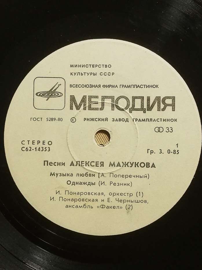 МИНИСТЕРСТВО КУЛЬТУРЫ СССР ВСЕСОЮЗНАЯ ФИРМА ГРАМПЛАСТИНОК МЕЛОДИЯ